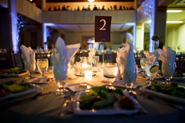 Dinner (sitting 8-12 per table) using round table 12 sq ft/person.